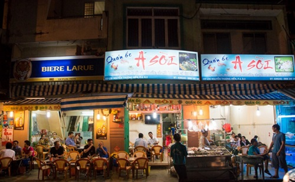 Quán Ốc A Sòi – one of the delicious snail and shellfish eateries on Nguyen Thuong Hien Street