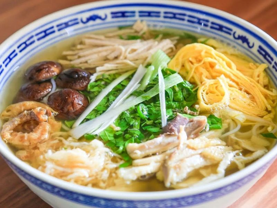 The bun thang here features a light and sweet broth, and each serving includes a variety of toppings such as bamboo shoots, mushrooms, chicken, and quail eggs, among others.