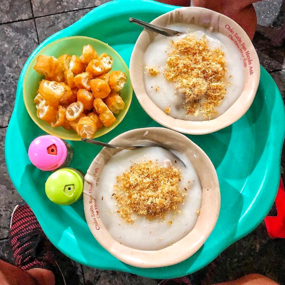 Chao Suon Sun Huyen Anh is located in a small alley next to Dong Xuan Market. Although the prices are relatively high, the porridge here is very popular among locals.