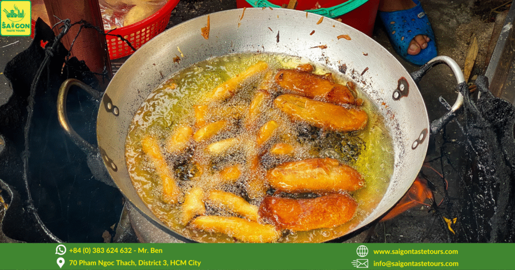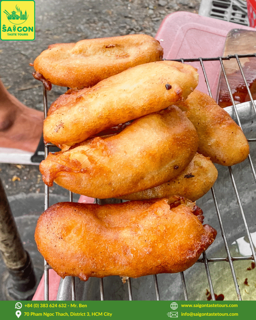 If you ever find yourself in Saigon, don’t miss the chance to try fried banana cakes and sweet potato fritters. Not only are they delicious, but they also give you a taste of how creative and resourceful Vietnamese street food vendors are.