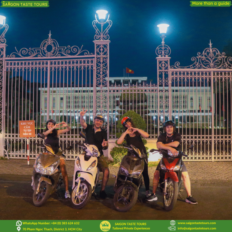 Get picked up right at your hotel and hop on the back of our scooters for a thrilling 4-hour journey through Saigon after dark. Guided by friendly locals, this tour takes you beyond the tourist areas into hidden alleyways, colorful street markets, and the city’s most fascinating districts. From upscale neighborhoods to local hangouts, you’ll see how Saigon transforms at night, vibrant, chaotic, mysterious, and full of life. Whether you’re curious about what happens in the city after sunset or just want to experience its nightlife like a true local, this tour is for you. At Saigon Taste Tours, we go beyond ordinary sightseeing. We provide personalized experiences designed around comfort, safety, and authenticity. Our local experts are more than guides, they’re like friends, sharing hidden gems, local flavors, and true stories of Vietnam.