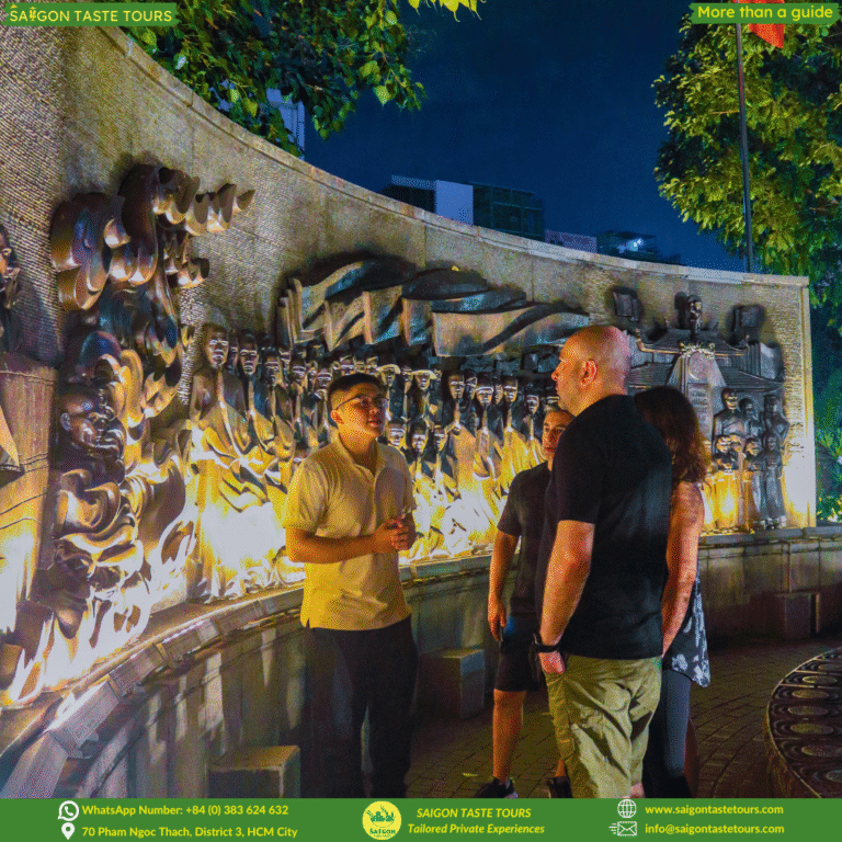 We’ll kick things off at a secret Saigon River viewpoint, a peaceful spot only locals know, where you’ll enjoy stunning city views under the night sky. From there, we ride through a charming Japanese town and marvel at Saigon’s French colonial landmarks, beautifully illuminated after dark. Along the way, we’ll stop at a meaningful site honoring a revered Vietnamese monk, whose powerful sacrifice became a symbol of courage and peace.