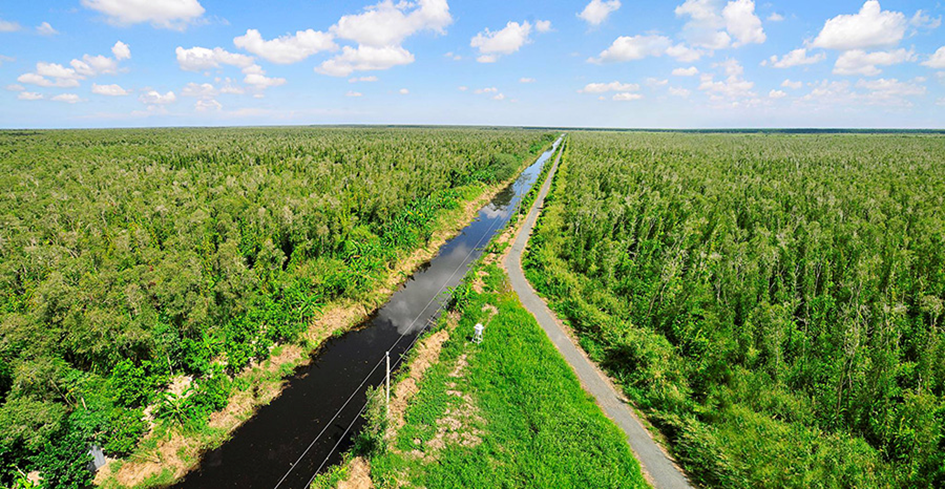 Ca Mau Cape World Biosphere Reserve is a natural mangrove forest ecosystem recognized by UNESCO. It includes the Mui Ca Mau National Park, U Minh Ha National Park, and the protective forest area along the West Sea.