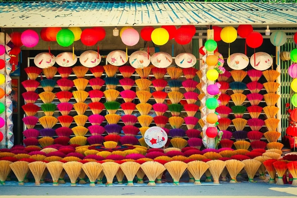 This village is 700 years old. In Hue, Thuy Xuan Incense Village makes great photographs. A stunning background is created by rows of colourful incense bundles. Pose and take colourful photographs freely.