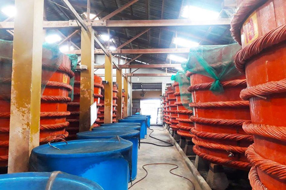 Fish sauce at Thinh Phat barrel house is completely handmade.