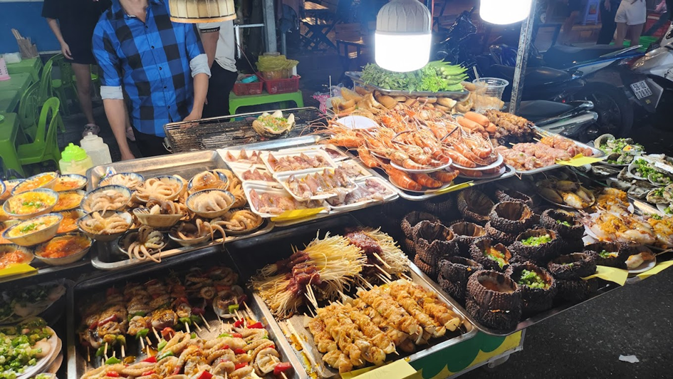 Phu Quoc Night Market features numerous stalls offering fresh seafood, local specialties like fish sauce, sim berry candy, pepper, and handicrafts. Beyond browsing and shopping, visitors should make sure to try the freshly prepared seafood dishes available at the market. Other recommended treats include rolled ice cream, egg cakes, and palm cakes.