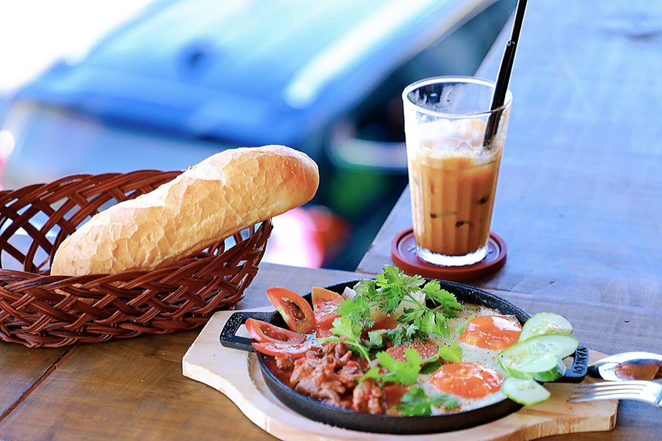 Enjoy a cup of coffee in the early morning with Vietnamese bread.